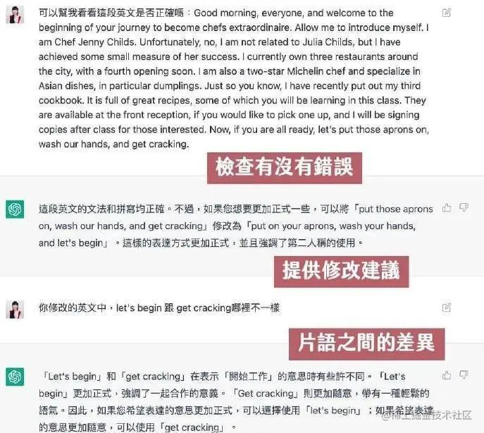 当然,ChatGPT 并不只是一个可以用来闲聊、开脑洞的产品,它还有不少实用功能。比如:帮助用户提升英语水平,或者帮忙修改文案。