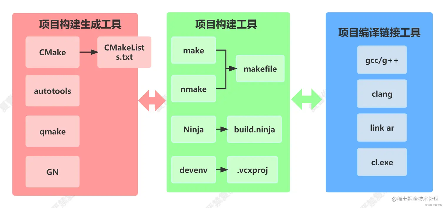 那为什么要有这三类工具,首先说下“项目编译链接工具” 只是使用这些工具其实就能够编译出所有的目标,但由于命令过于复杂,编译的流程不好控制。比如我们编译一个执行程序