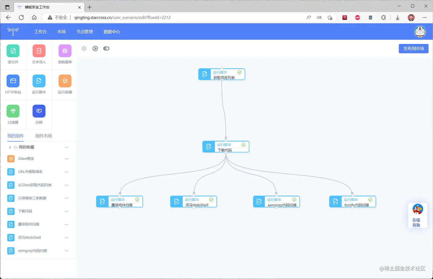 现在已经有了gitlab的实验环境,可以正式开始做实验,首先打开蜻蜓的市场页面,URL地址如下