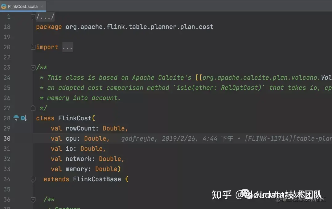 Calcite 中使用 RelOptCost 作为优化器 Cost 的基础接口,默认有 rowCount(数据行数)、CPU(CPU 的消耗)、IO(磁盘 IO 消耗),我们也可以通过实现RelOptCost 接口,自定义我们的 Cost Model,一般 SQL 优化器 Cost 除了 CPU、磁盘 IO 消耗外,还有内存以及网络 IO,最终代价还取决于优化器优化的资源类型。 下面以 Flink 中的 Cost 举例:
