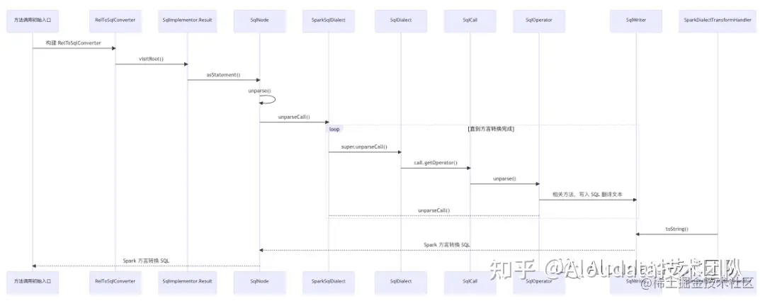 SQL 方言转换的核心源码调用时序图如下: