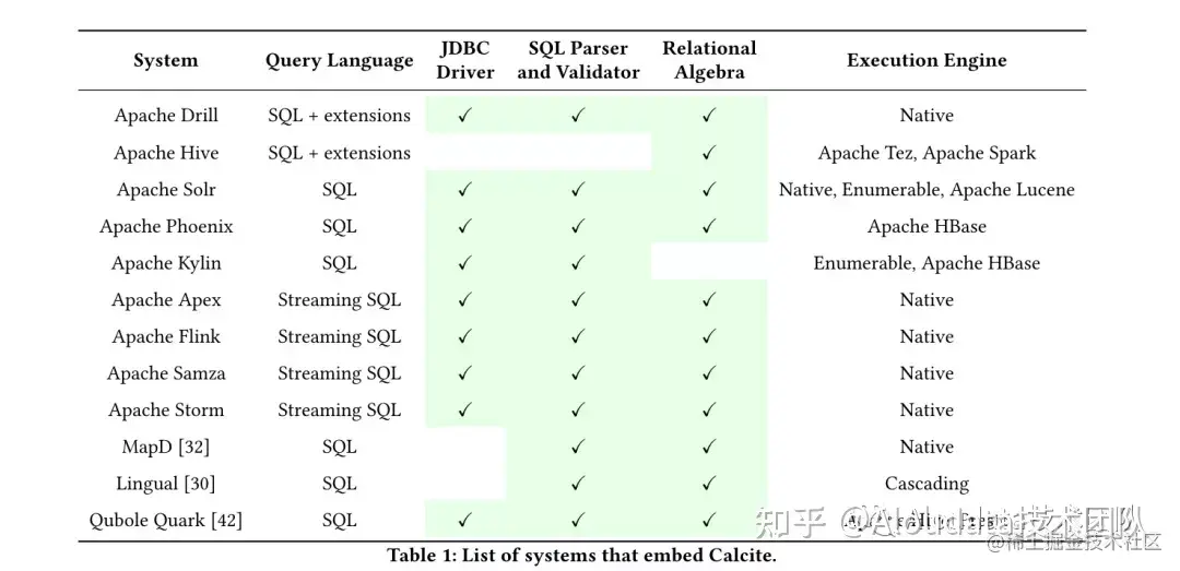 与此同时,大量商业产品也在使用 Calcite,广泛的应用也验证了 Calcite 项目自身的成熟性。使用 Calcite 能够降低开发 SQL Base 的项目复杂度,在 SQL 层,我们无需重复对 SQL 解析、元数据验证、RBO 和 CBO 等底层框架造轮子,大大地提高了开发效率。