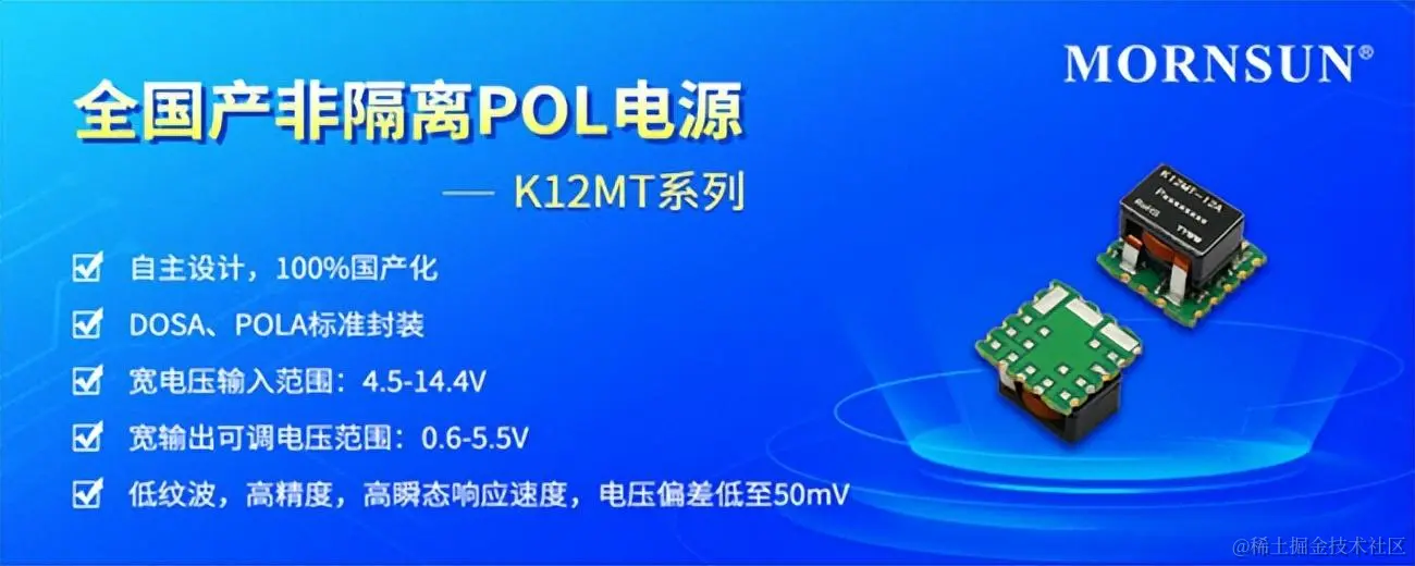 【导读】 金升阳推出新一代小体积非隔离POL电源K12MT系列,该系列产品具有6A/12A/16A带载能力,输出电压在0.6-5.5V范围内精准可调,以满足广泛需求的POL功率范围。