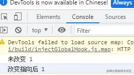 <script> var num = 1; var obj = { num: 2 }; var fun = (data) => { console.log(data,this.num); //console.log(window.num); } fun(); //使用call 改变指向 fun.call(obj,'改变指向后'); //window.fun.call(window.obj); </script> 结果如图: