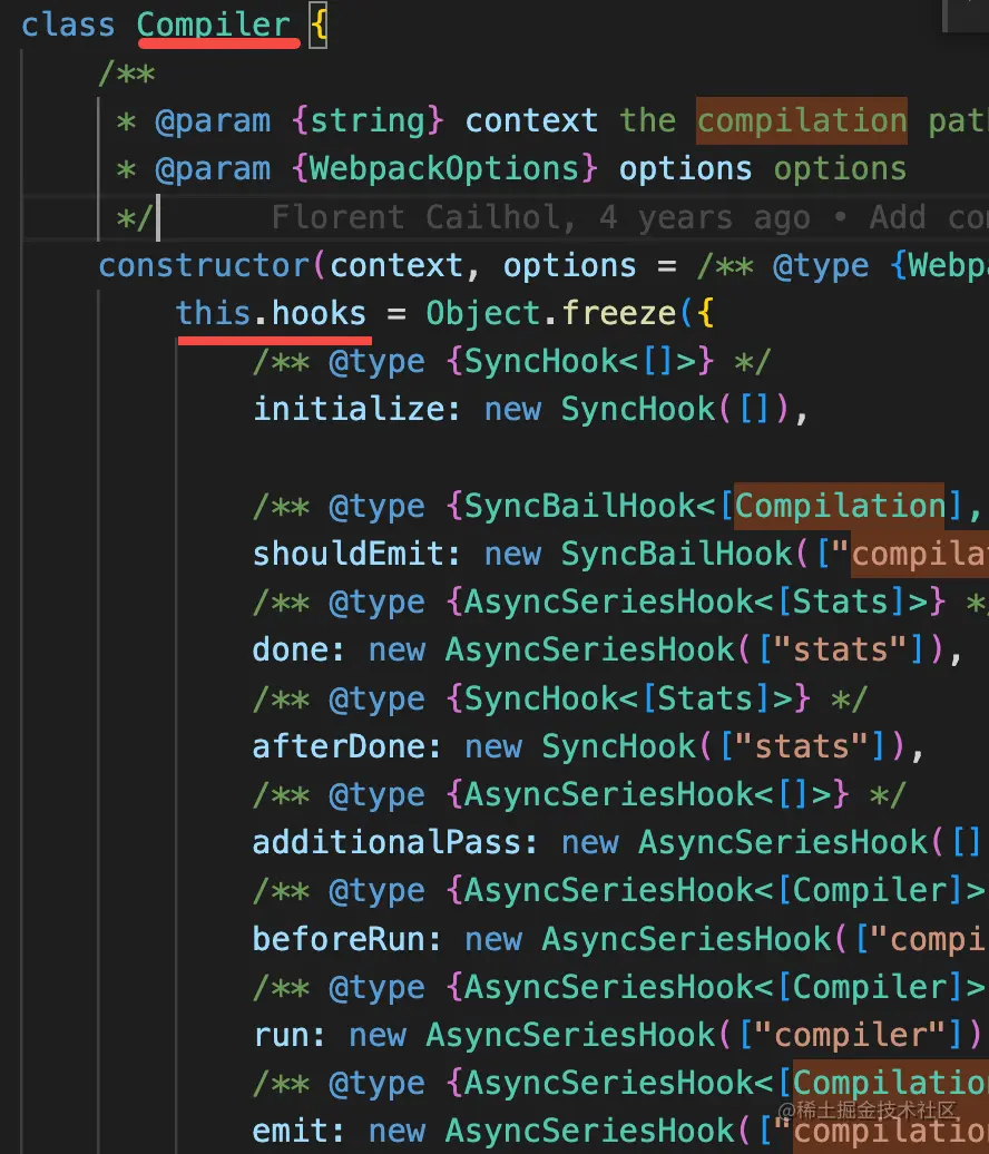而我们是想在这个 hook 里注册 Compilation 的 hook 的,全局只需要执行一次就行,所以用 thisCompilation 的 Compiler hook。