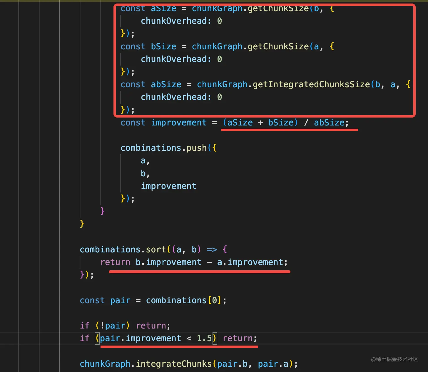 const abSize = chunkGraph.getIntegratedChunksSize(b, a, {