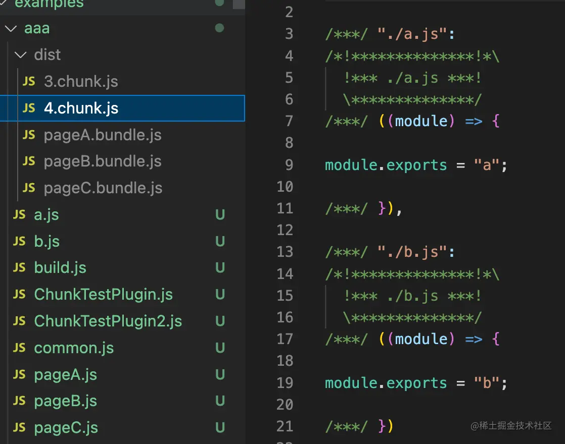 分别是 a + common,b + common,a + b,也就是每个入口模块依赖的所有异步模块。