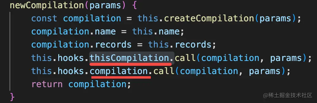 可以看到 thisCompilation 是在 newCompilation 这个方法调用的。