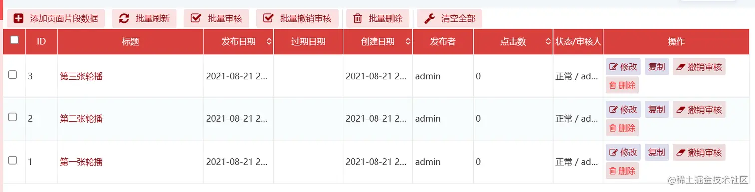 - 点击页面--》页面片段管理--》推荐位:首页轮播图。