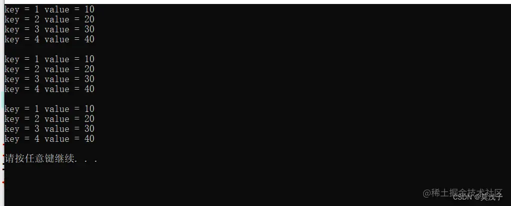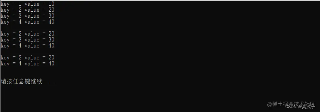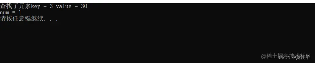 cout<<"查找了元素key = "<<pos->first<<" value = "<<pos->second <<endl;