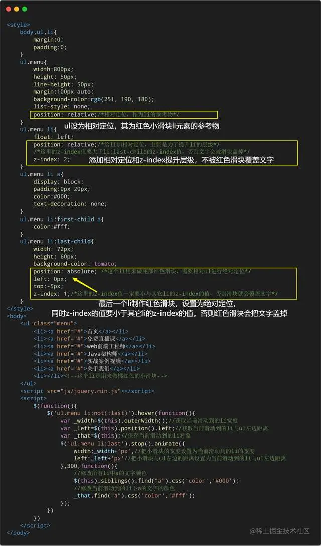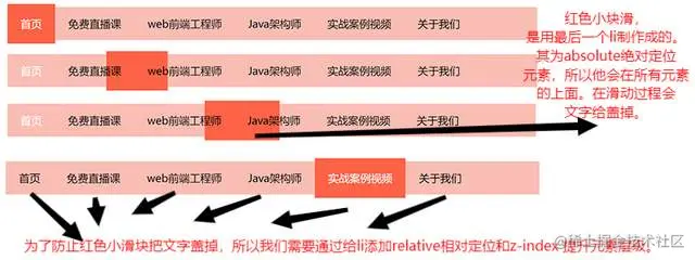3、鼠标滑动动画效果,可通过相对定位来微调位置实现