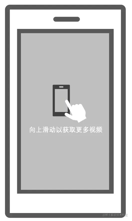 新的「上滑引导」使用了动态引导的方式,并且对文案进行了优化。引导方式从第一版实验中的半动态指示条,改为一段悬浮于屏幕之上的动画,动画中直接演示出上滑屏幕这一动作;同时,文案也由前一版的“向上滑动查看其他视频”更改为“向上滑动以获取更多视频”。