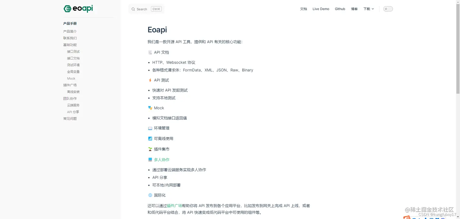 这类 API 管理工具,除了 API 文档功能,有的还可以进行 mock 测试、团队协作等功能,特别方便前后端对接时使用,今天给大家带来一个新的开源 API 管理工具——Eoapi。