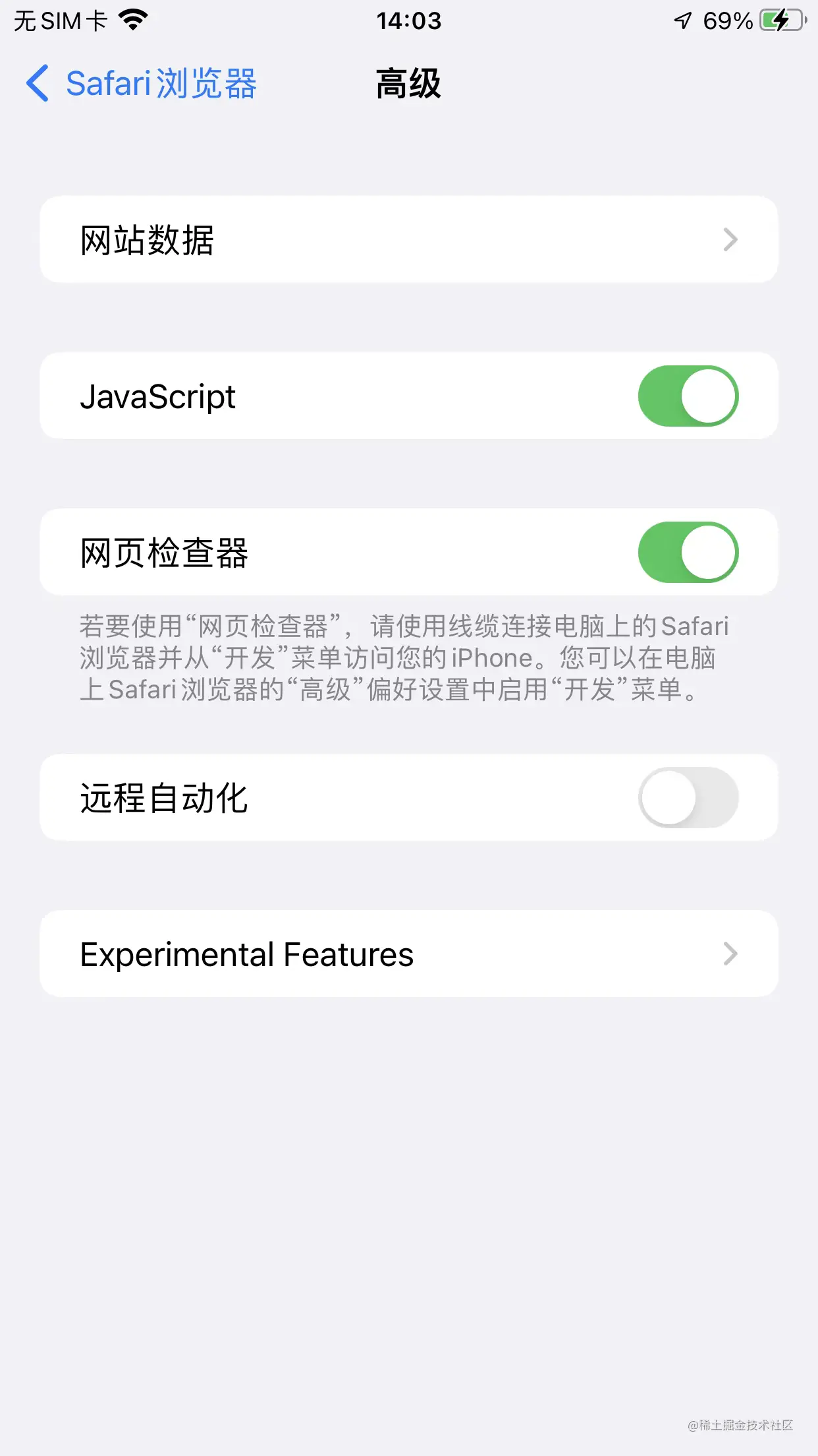 iOS 真机调试时,需要将 Safari 的 网页检查器 打开