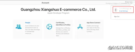 1、登录苹果开发者中心,点击右上角,账号名称的下拉,再点击Email-Setting