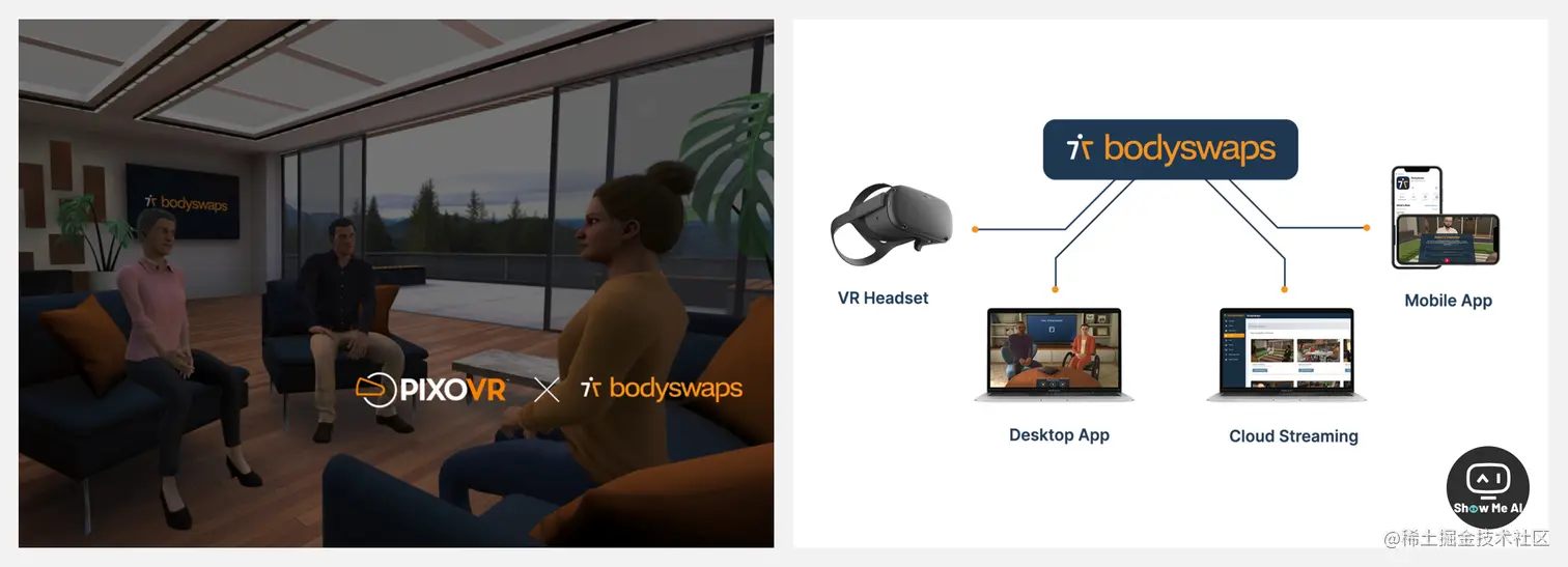 Bodyswaps 将人工智能(AI)与虚拟现实(VR)技术应用于沟通场景,使用“硬件+软件+技能培训”一整套解决方案,为学习者提供身临其境的体验,帮助培养沟通、协作、领导等能力。