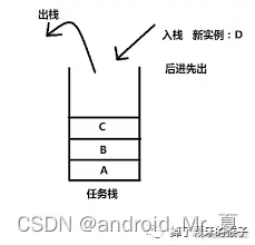 一个项目中会包含多个activity,系统中使用任务栈来存储这些activity,任务栈呢,是一种“后进先出”的栈结构。举个栗子:当我们多次启动同一个(没有设置启动方式–即默认的启动方式)的activity的时候,系统会创建多个实例依次进入栈中。当back返回的时候,每按一次,一个activity出栈。直至栈空为止。