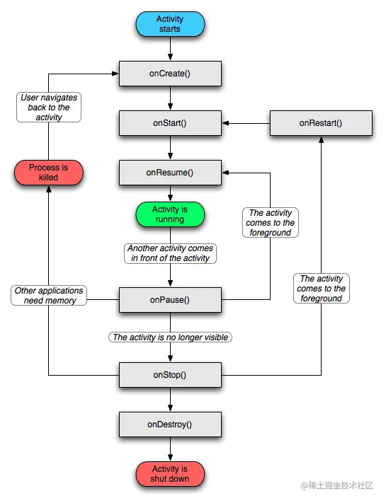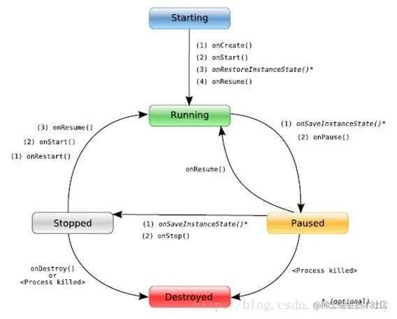 - 启动状态(Starting):Activity的启动状态很短暂,当Activity启动后便会进入运行状态(Running)。