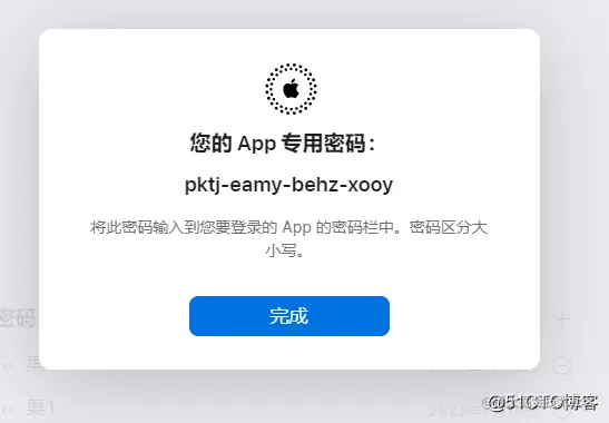 点击创建生成,(注意密码标签不是专用密码,是由苹果系统生成的一串密码)专用密码就是下面这个样子的密码,把这个密码复制,打开Appuploader