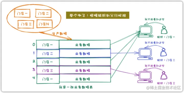 行权限:按照数据内容过滤,常用场景比如不同部门只能看到自己部门的数据,不同产品线只能看到自己产品线的数据,不同门店只能看到自己门店的数据等;