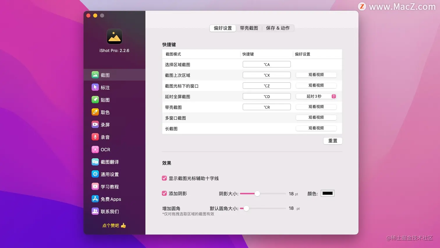 iShot Pro for Mac(截图软件) 用户4379107122725 2022-12-09 304 阅读1分钟 iShot Pro是一款非常优秀的Mac截图软件,软件非常易于操作,主页面还设置了学习教程,可以轻松玩转软件所有功能,并且功能非常强大,不仅可以实现多种截图方式,还可以进行标注、贴图、取色、录屏、录音、OCR识别、截图翻译等功能,非常值得入手。 iShot Pro for Mac(截图软件)