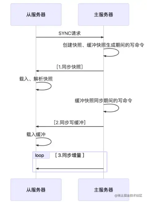 - 主数据库快照发送完毕后开始向从数据库发送缓冲区中的写命令;