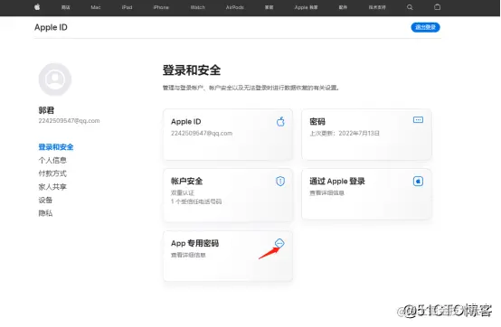 假如你还没有设置专用密码,可以在苹果开发者中心的下图的这个地方进入设置专用密码: