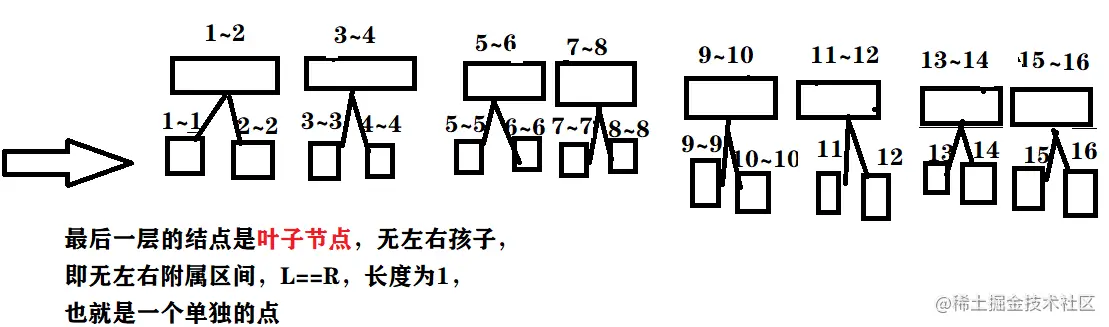 倘若线段树根节点代表的线段是[1,16],则线段左边界L=1,右边界R=16;