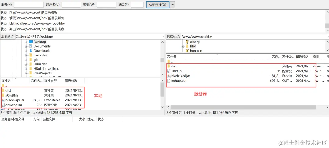软件界面大致就是这样的,左边客户端,右边服务器,上传:左边文件拉到右边。下载:右边拉到左边,特别简单。