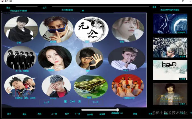 点击歌手的图片或者姓名可以查询有关于他的歌曲