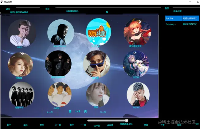 - 歌单列表有上下页的功能(本项目的所有数据都是数据库里的)