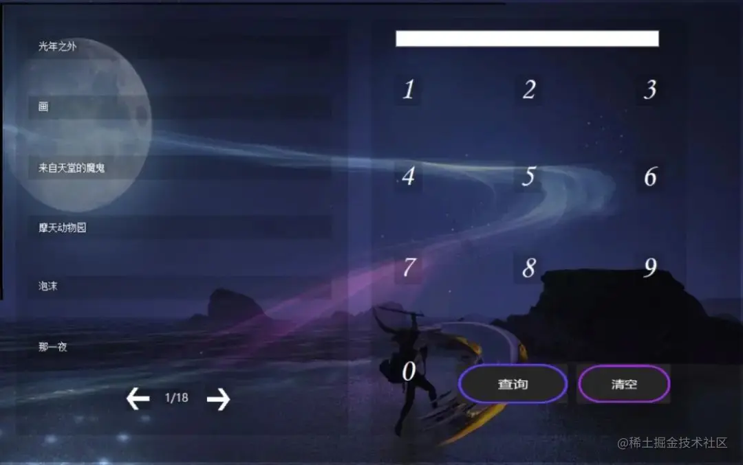 由歌单列表和字数点歌页面组成,字数点歌可以输入歌名的长度进行查询