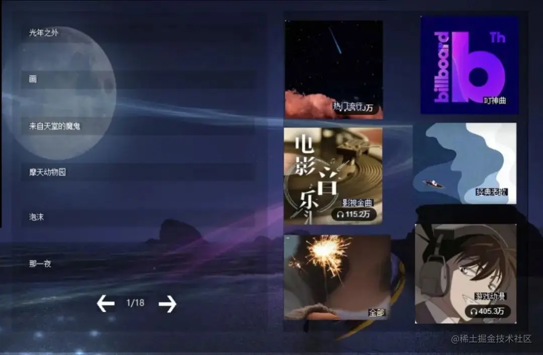 - 歌单列表有上下页的功能(本项目的所有数据都是数据库里的)