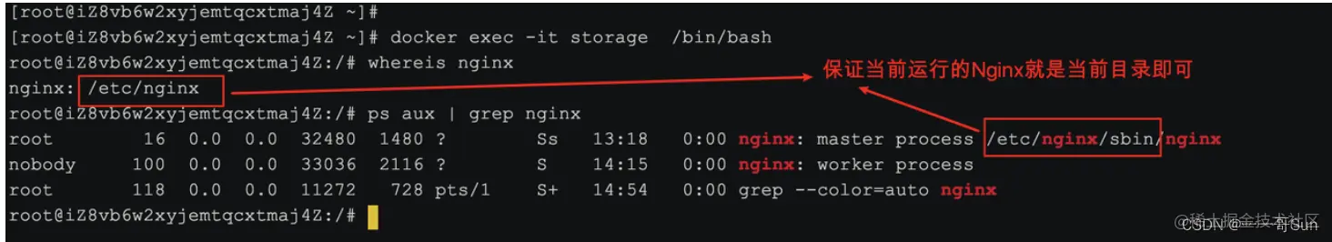 进入storage的容器内部,修改nginx.conf。