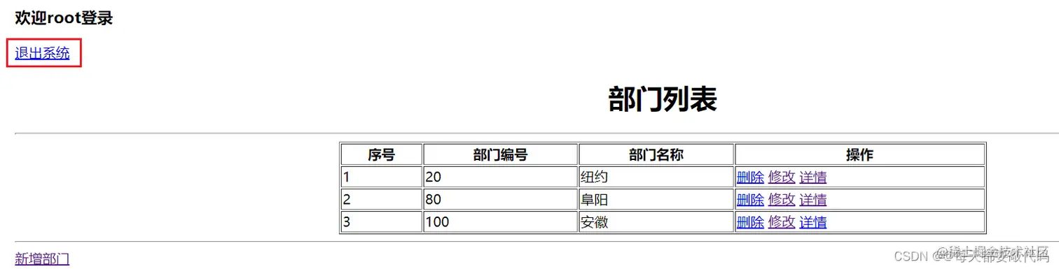 <a href="<%=request.getContextPath()%>/dept/exit">退出系统</a>