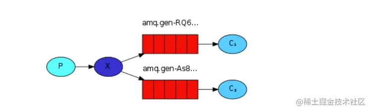 并且多了个交换机,且它的类型是fanout