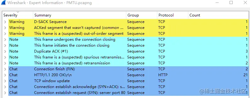 数据包跟踪文件实际展开如下:
