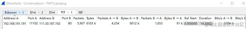 其中需要注意的是 TCP payload 大小 508 字节,这样使得 No.7 整个数据包为 590 字节,减去 14 字节 Ethernet 首部长度后,实际 No.7 数据包的 MTU 为 576,而 576 是广域网所规定的一个最小 MTU 标准值。