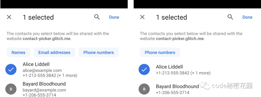 Contact Picker API 为浏览器提供了获取手机联系人的能力。