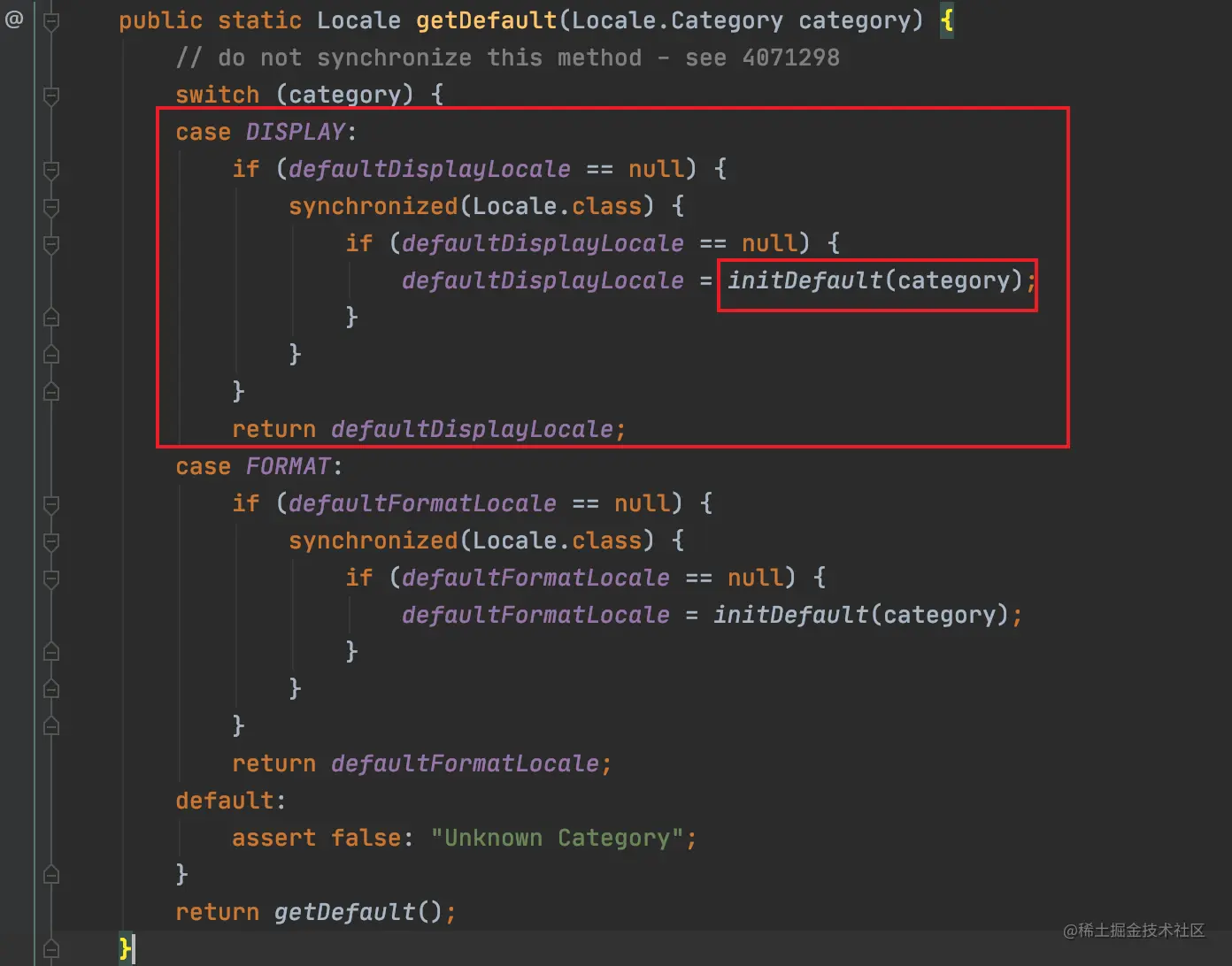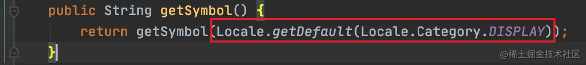 带着这个疑问,看了下getSymbol()方法的源码,发现其内部有获取默认区域设置的逻辑: