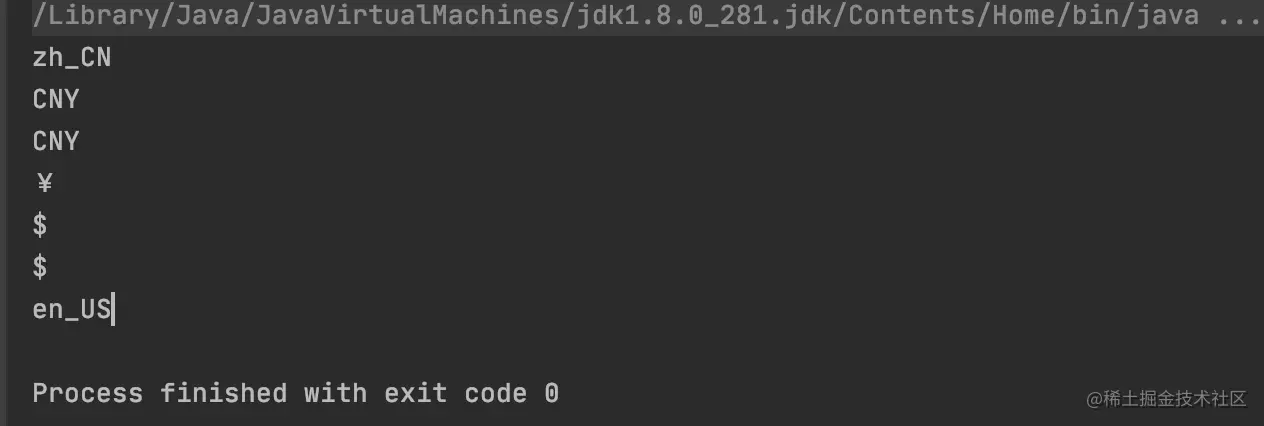 从输出结果可以看出,刚开始的默认区域设置是zh_CN,执行Locale.setDefault(Locale.US);修改默认区域设置后,下面的代码原本在本机是返回¥的,现在却返回了CNY: