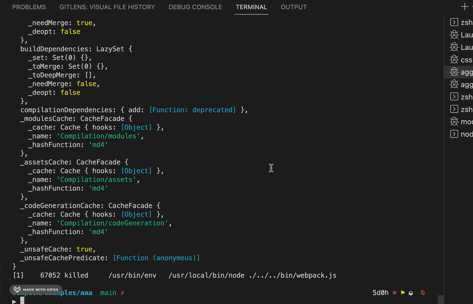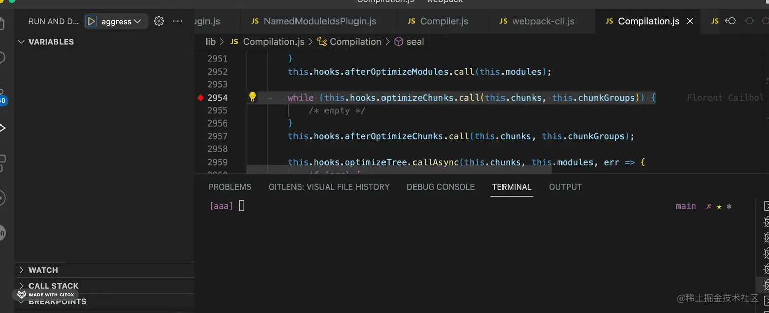 比如我想看 webpack 源码里的 compilation 对象的值,我打印了一下: