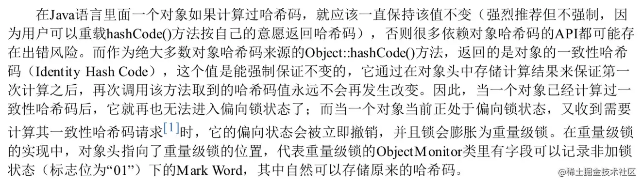 hashCode方法无法触发锁撤销。 - 在同步代码块中调用