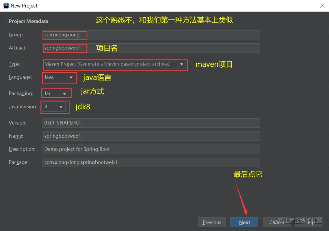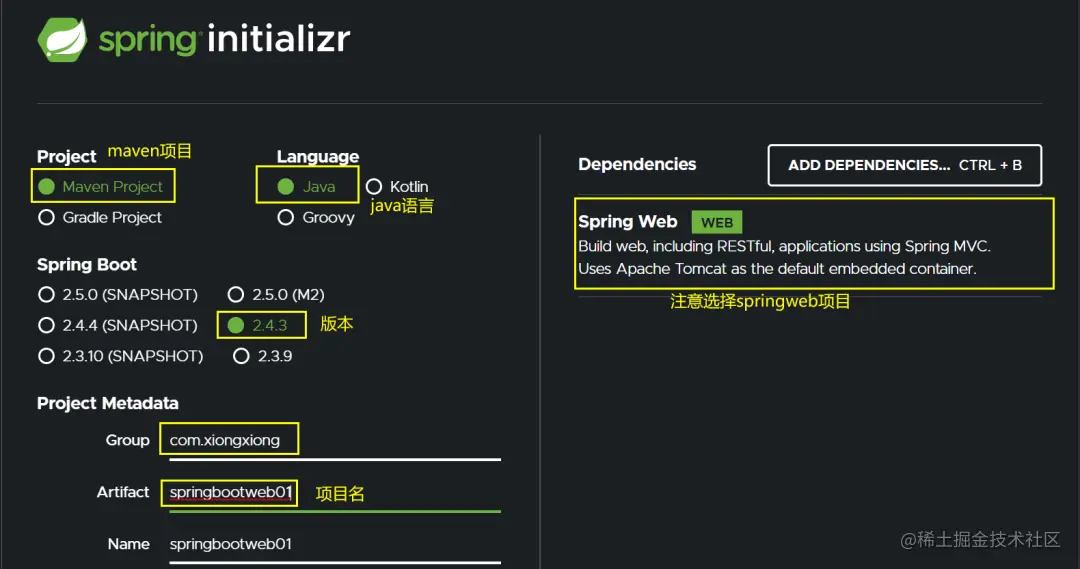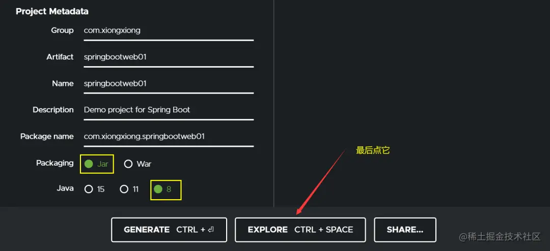 打开spring官网,网址为:start.spring.io/,按照下图选择对应的选…