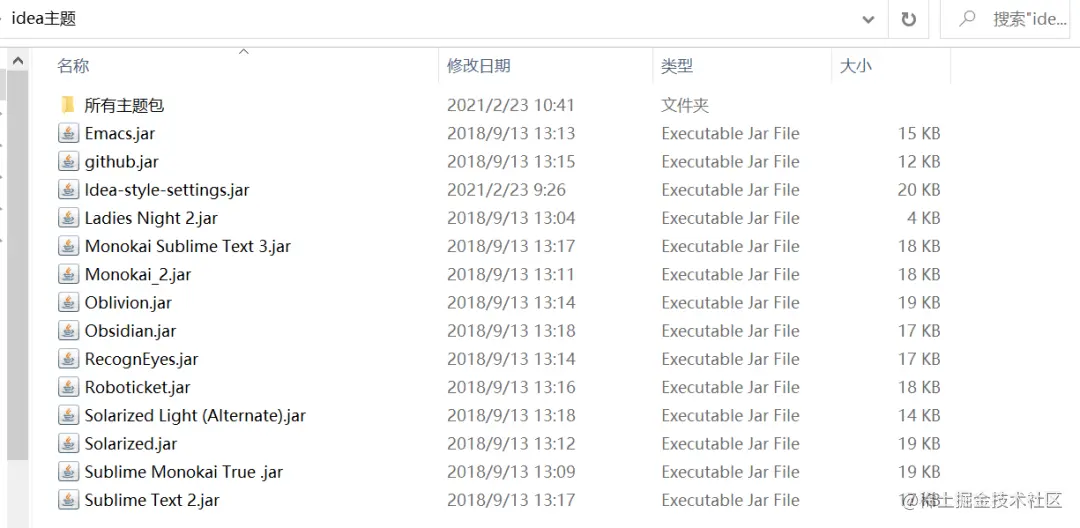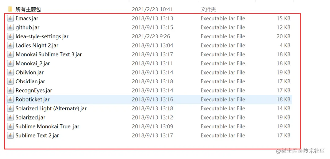 大家可以看到下载的文件夹中,除了所有的主题包之外,下面还有其他的主题jar,我们看看这些应该怎么导入。