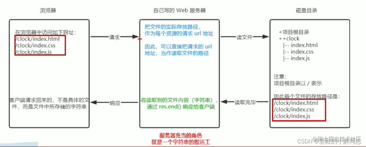 我们输入/index.html url拿到了这个短地址 ,dirname拿到了当前文件的目录路径也就是online,我们将路径导向index.html的父级文件夹 ,三个拼接在一起 就能准确的定位到index.html文件,获取内容将其发送到客户端。