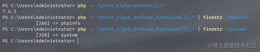 利用这种方法首先还需要知道PHP的具体版本,因为每个版本的get_defined_functions()返回的值都是不一样的,这里以php7.4.3为准