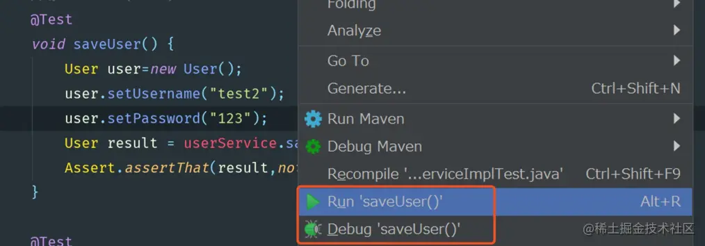 我们只需要把光标定位在要测试的方法内部,然后右键选择run执行就可以了。