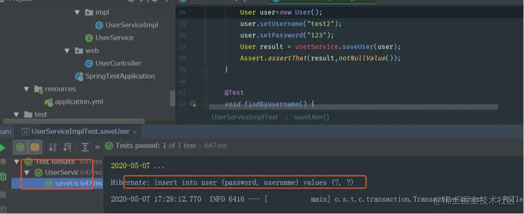 我们在进行单元测试的时候,如果不想让测试数据对正式数据库,造成垃圾数据,可以开启事务功能。只需要在方法或者类上面添加@Transactional注解即可。